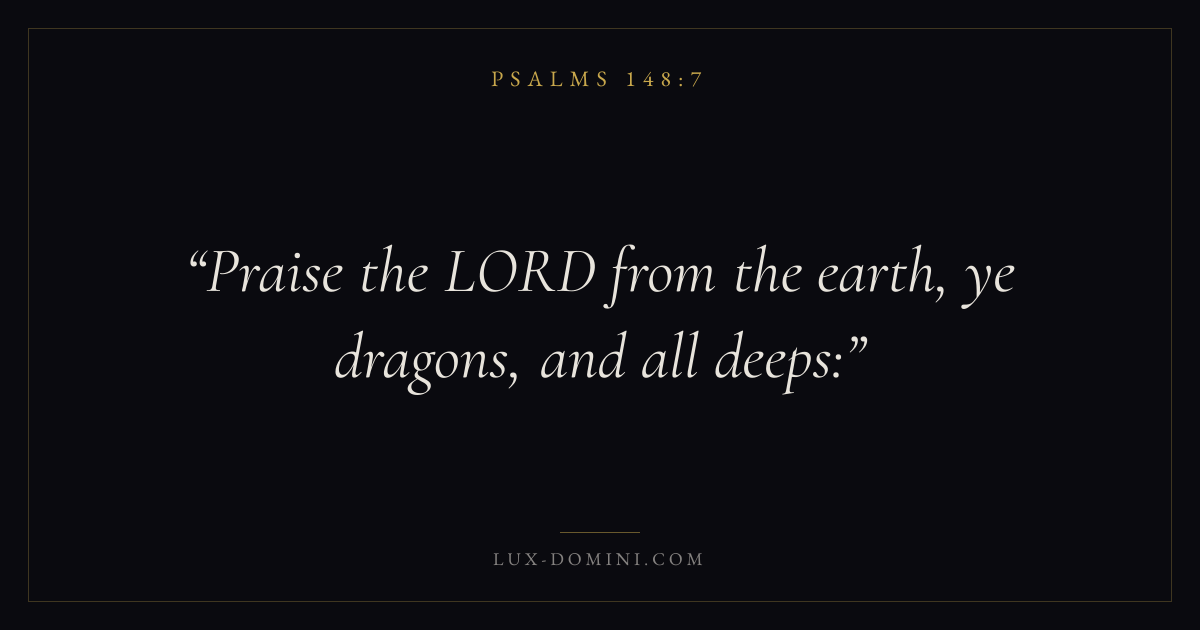 Books / Psalms / Chapter 148 / Verse 7 ← Psalms 148:6 Psalms 148:7 Psalms 148:8 → Praise the LORD from the earth, ye dragons, and all deeps: Download verse card Share on Twitter Share on Facebook Pin it ✦ Key themes FaithPrayerPraiseLament Read with Hebrews 11:1Romans 10:17Matthew 6:9Luke 18:1 Related topics Bible verses about faithBible verses about prayerBible verses about thankfulness and gratitudeBible verses about grief and loss ✦ Psalms Chapter 148 verses V. 1 V. 2 V. 3 V. 4 V. 5 V. 6 V. 7 V. 8 V. 9 V. 10 V. 11 V. 12 V. 13 V. 14