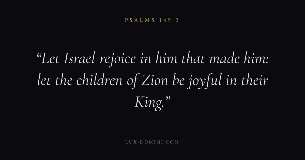 Let Israel rejoice in him that made him: let the children of Zion be joyful in their King.