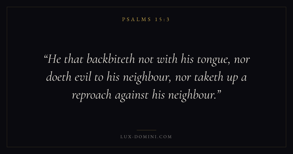 He that backbiteth not with his tongue, nor doeth evil to his neighbour, nor taketh up a reproach against his neighbour.
