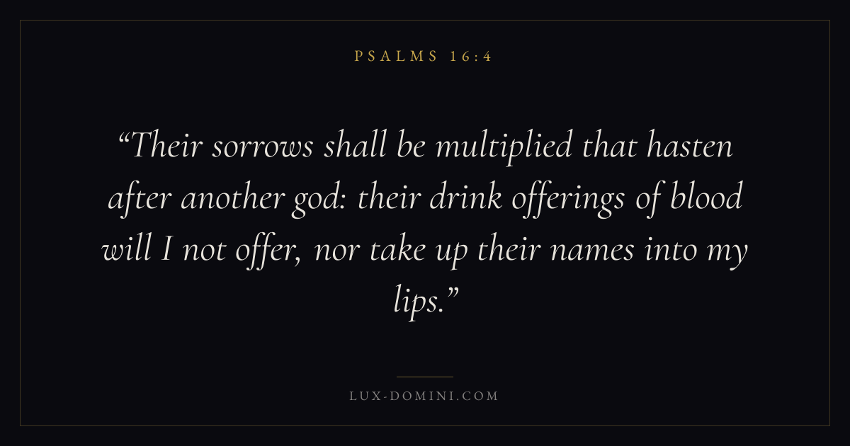 Their sorrows shall be multiplied that hasten after another god: their drink offerings of blood will I not offer, nor take up their names into my lips.
