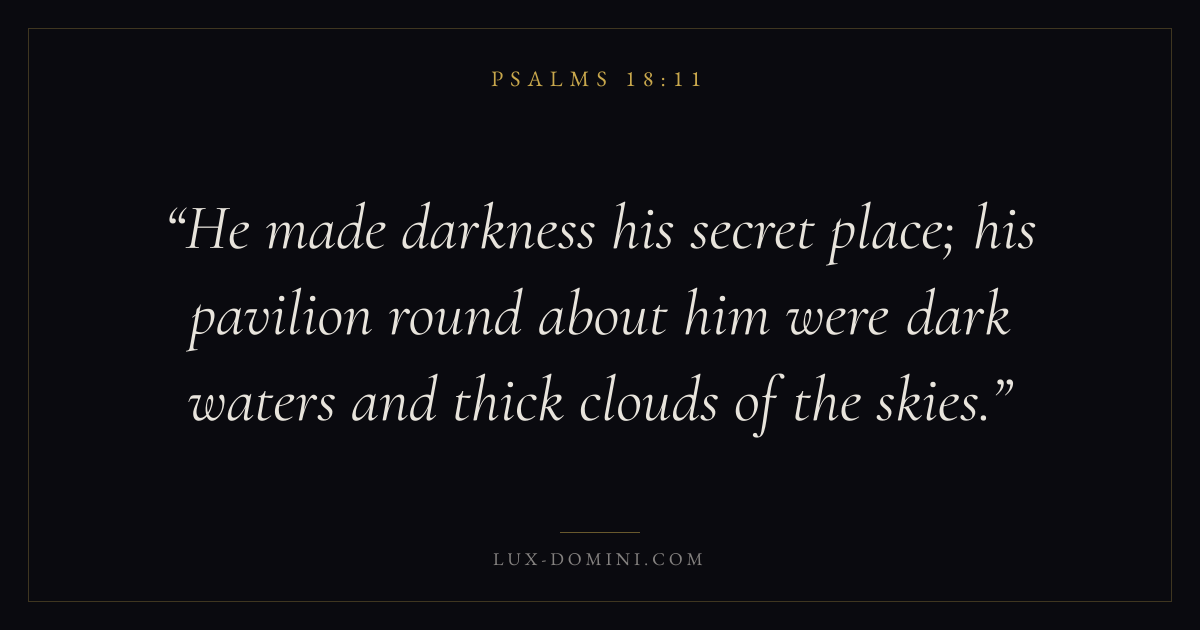 He made darkness his secret place; his pavilion round about him were dark waters and thick clouds of the skies.