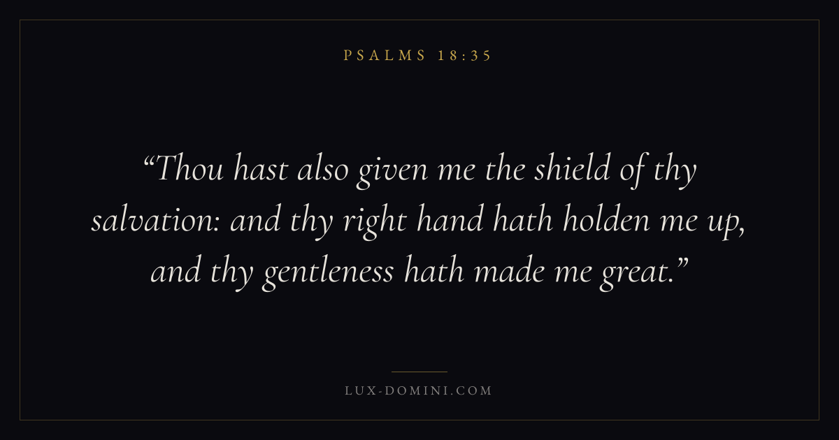 Thou hast also given me the shield of thy salvation: and thy right hand hath holden me up, and thy gentleness hath made me great.