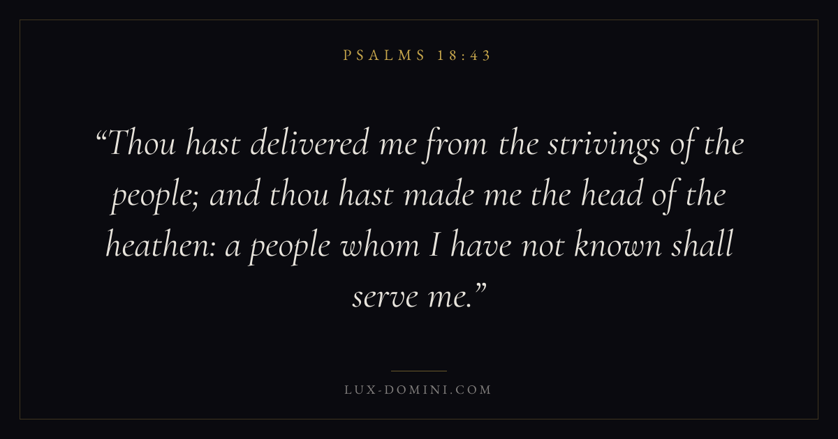 Thou hast delivered me from the strivings of the people; and thou hast made me the head of the heathen: a people whom I have not known shall serve me.