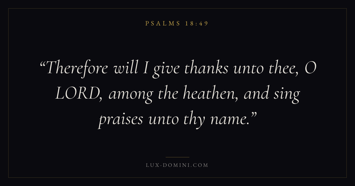 Therefore will I give thanks unto thee, O LORD, among the heathen, and sing praises unto thy name.