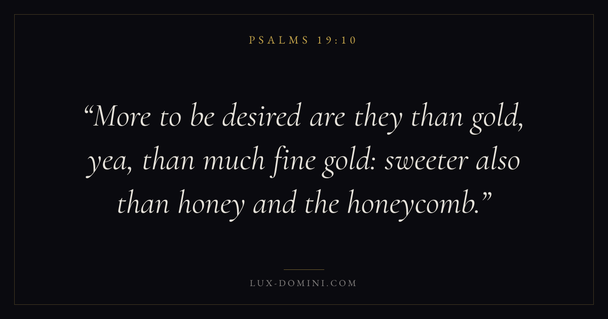 More to be desired are they than gold, yea, than much fine gold: sweeter also than honey and the honeycomb.