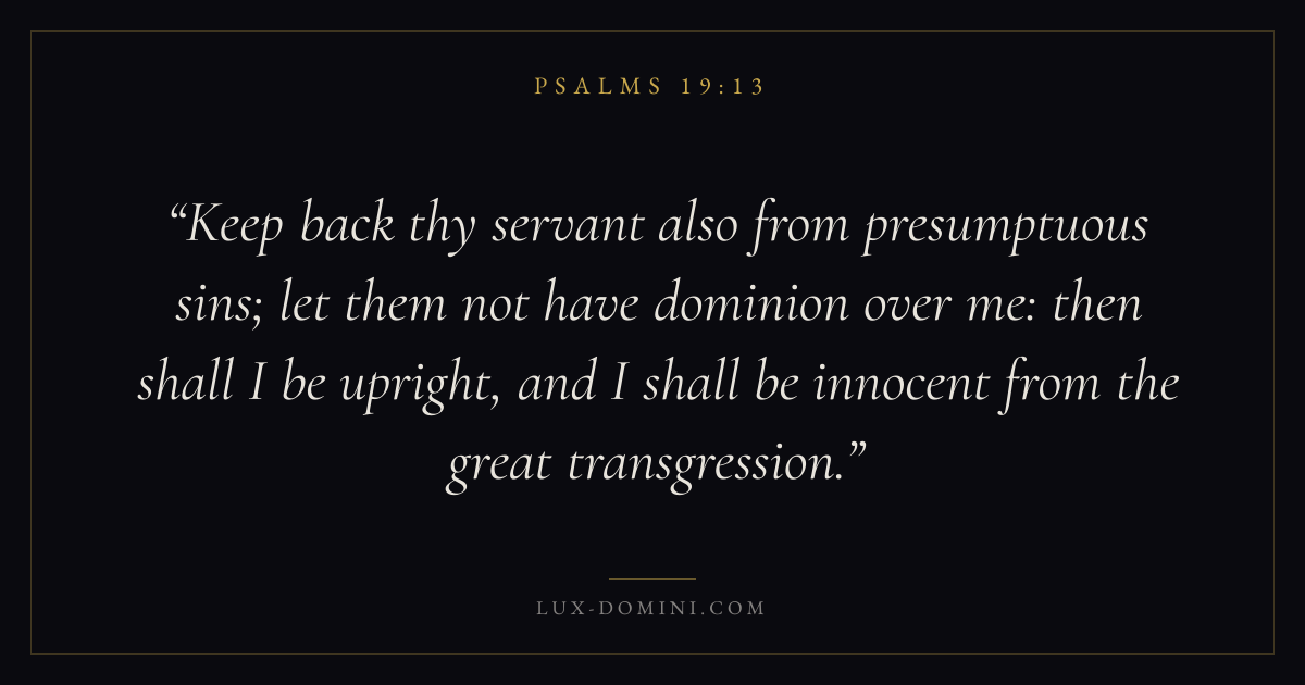 Keep back thy servant also from presumptuous sins; let them not have dominion over me: then shall I be upright, and I shall be innocent from the great transgression.