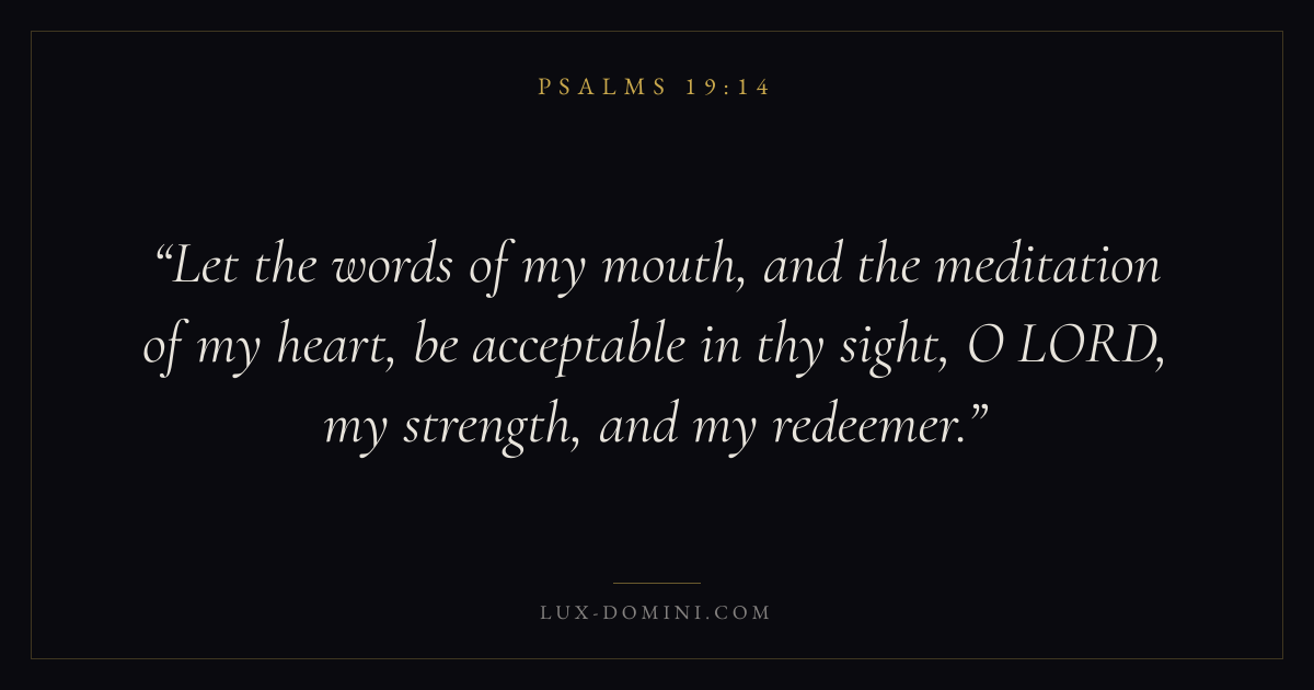 Let the words of my mouth, and the meditation of my heart, be acceptable in thy sight, O LORD, my strength, and my redeemer.