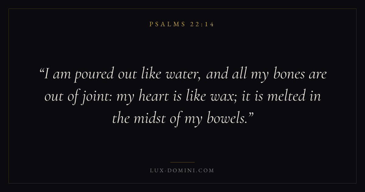 I am poured out like water, and all my bones are out of joint: my heart is like wax; it is melted in the midst of my bowels.