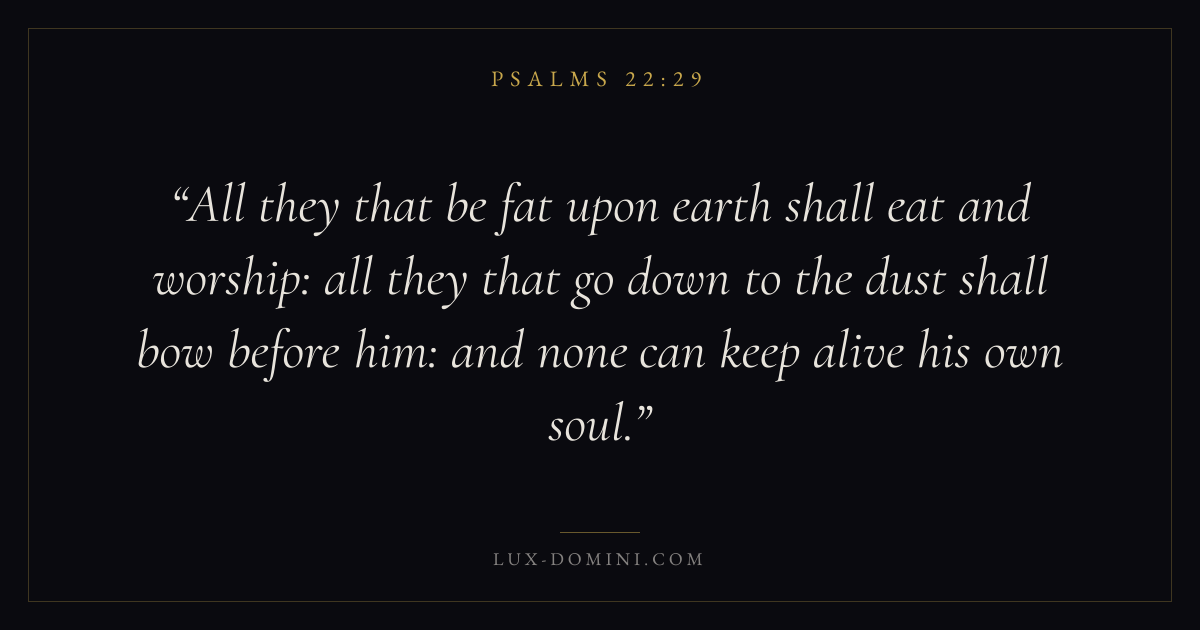 All they that be fat upon earth shall eat and worship: all they that go down to the dust shall bow before him: and none can keep alive his own soul.