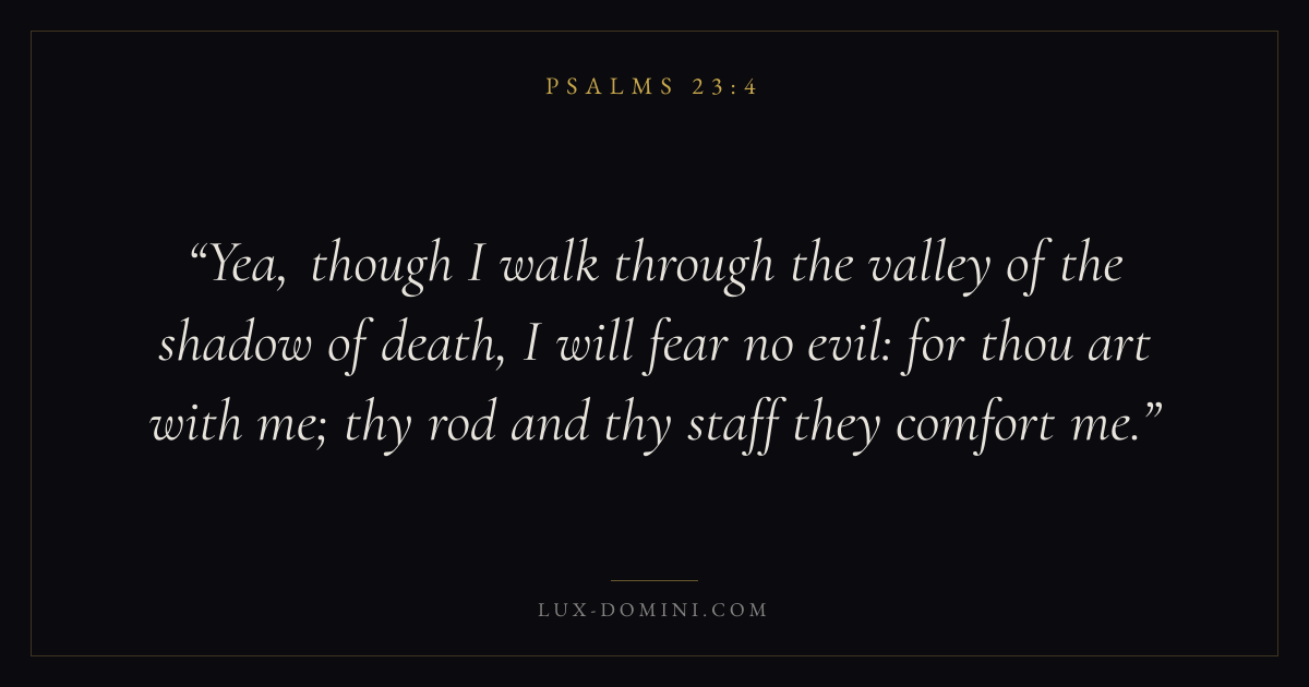 Yea, though I walk through the valley of the shadow of death, I will fear no evil: for thou art with me; thy rod and thy staff they comfort me.