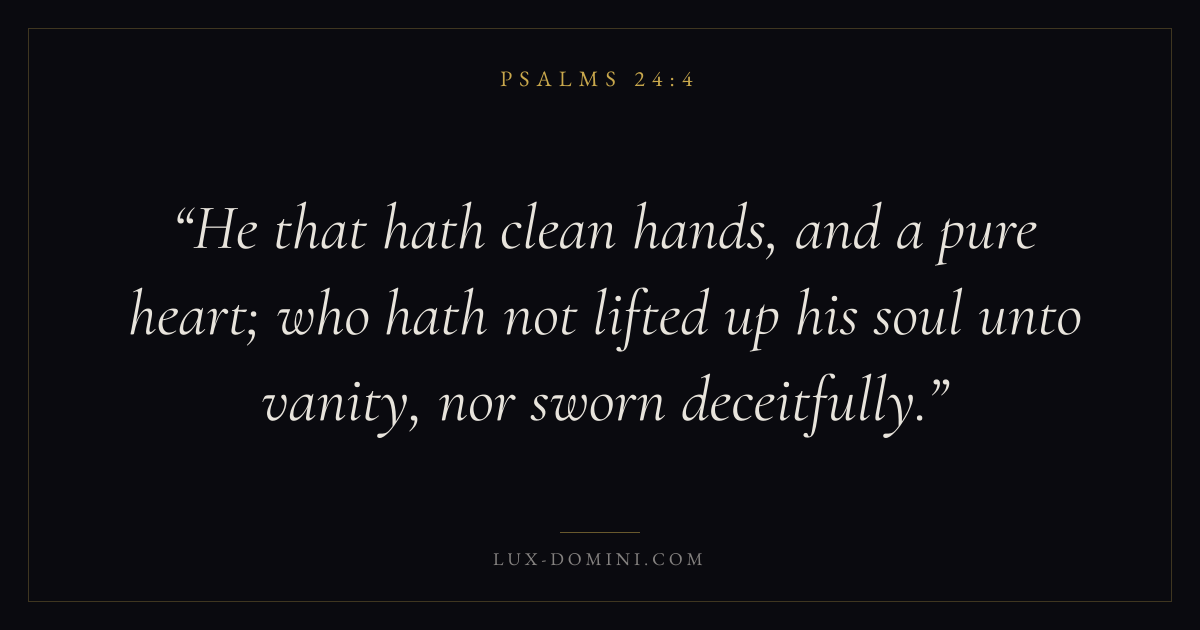 He that hath clean hands, and a pure heart; who hath not lifted up his soul unto vanity, nor sworn deceitfully.