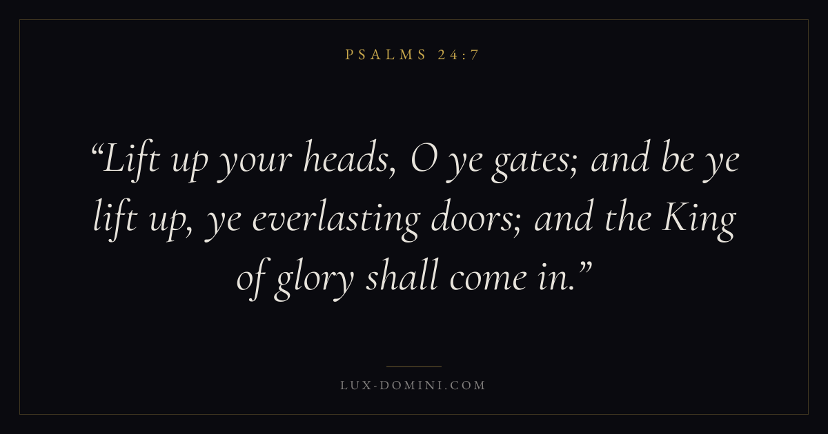 Lift up your heads, O ye gates; and be ye lift up, ye everlasting doors; and the King of glory shall come in.
