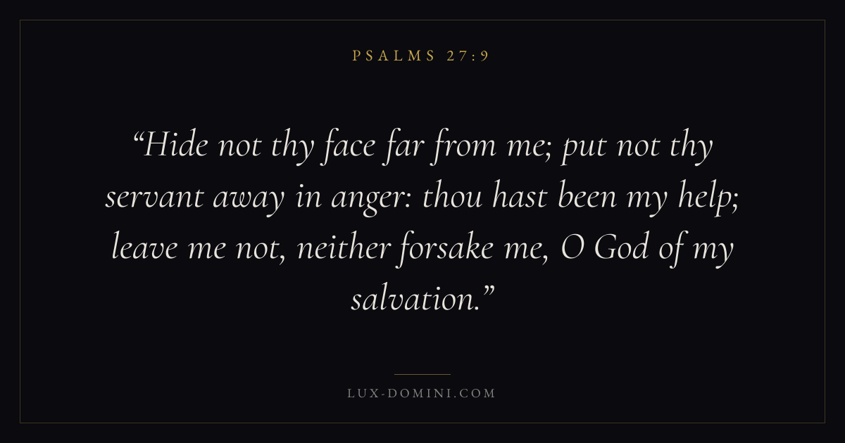 Hide not thy face far from me; put not thy servant away in anger: thou hast been my help; leave me not, neither forsake me, O God of my salvation.
