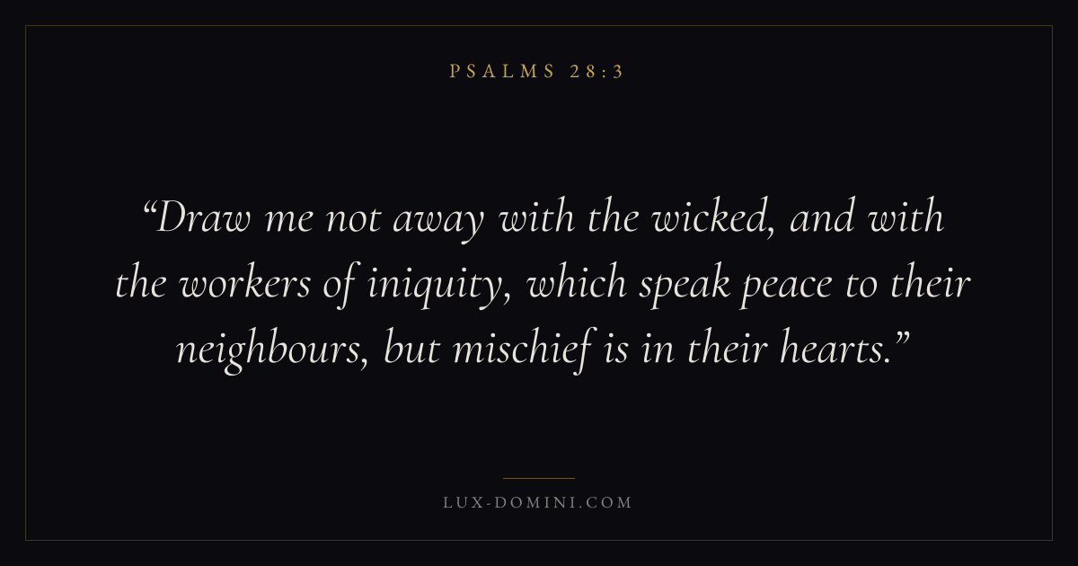 Draw me not away with the wicked, and with the workers of iniquity, which speak peace to their neighbours, but mischief is in their hearts.
