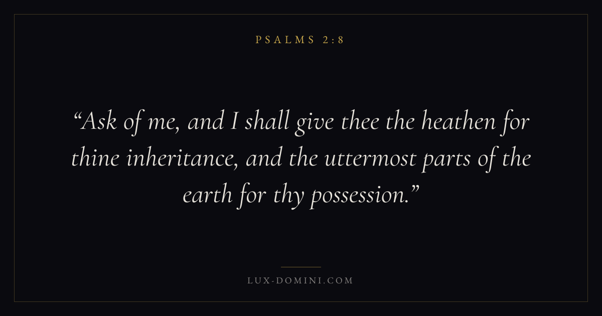 Ask of me, and I shall give thee the heathen for thine inheritance, and the uttermost parts of the earth for thy possession.