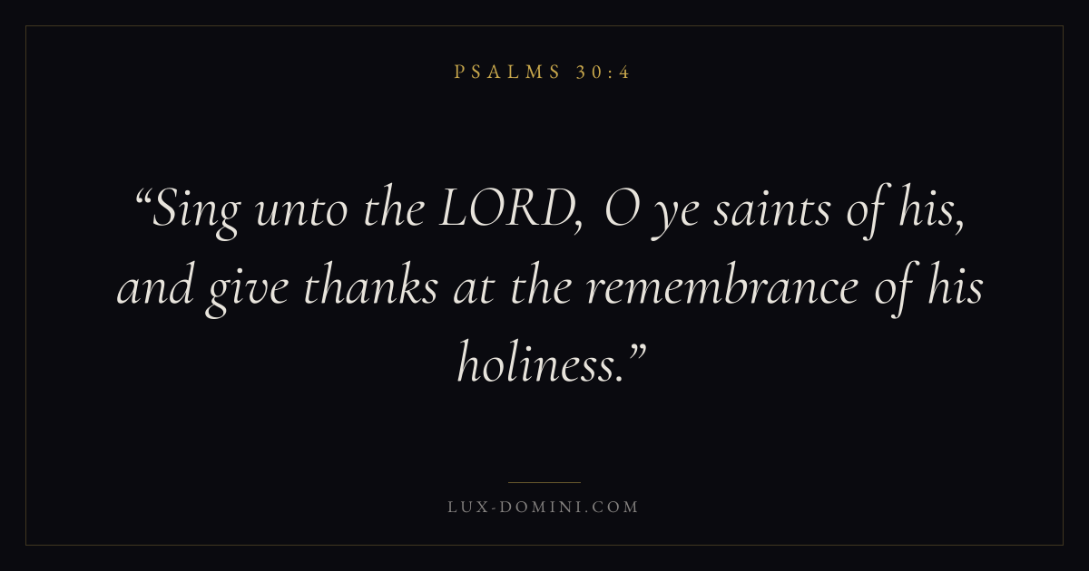 Sing unto the LORD, O ye saints of his, and give thanks at the remembrance of his holiness.