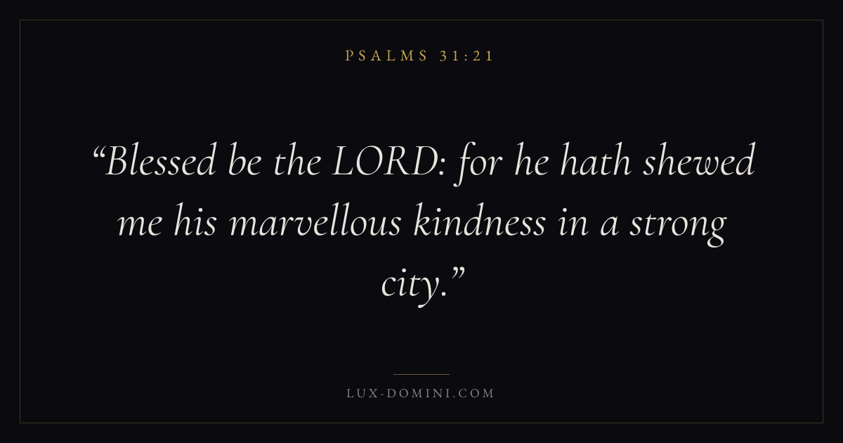 Blessed be the LORD: for he hath shewed me his marvellous kindness in a strong city.