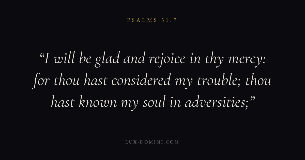 I will be glad and rejoice in thy mercy: for thou hast considered my trouble; thou hast known my soul in adversities;