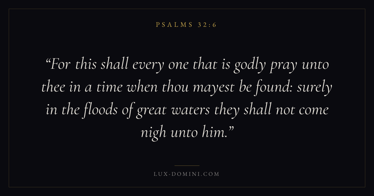 For this shall every one that is godly pray unto thee in a time when thou mayest be found: surely in the floods of great waters they shall not come nigh unto him.