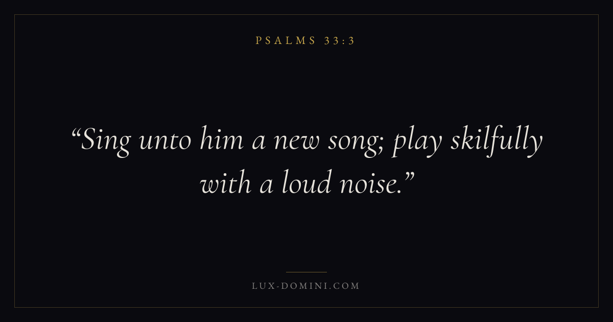 Books / Psalms / Chapter 33 / Verse 3 ← Psalms 33:2 Psalms 33:3 Psalms 33:4 → Sing unto him a new song; play skilfully with a loud noise. Download verse card Share on Twitter Share on Facebook Pin it ✦ Key themes FaithPrayerPraiseLament Read with Hebrews 11:1Romans 10:17Matthew 6:9Luke 18:1 Related topics Bible verses about faithBible verses about prayerBible verses about thankfulness and gratitudeBible verses about grief and loss ✦ Psalms Chapter 33 verses V. 1 V. 2 V. 3 V. 4 V. 5 V. 6 V. 7 V. 8 V. 9 V. 10 V. 11 V. 12 V. 13 V. 14 V. 15 V. 16 V. 17 V. 18 V. 19 V. 20 V. 21 V. 22