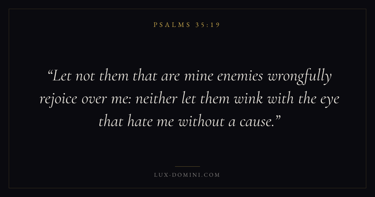 Let not them that are mine enemies wrongfully rejoice over me: neither let them wink with the eye that hate me without a cause.