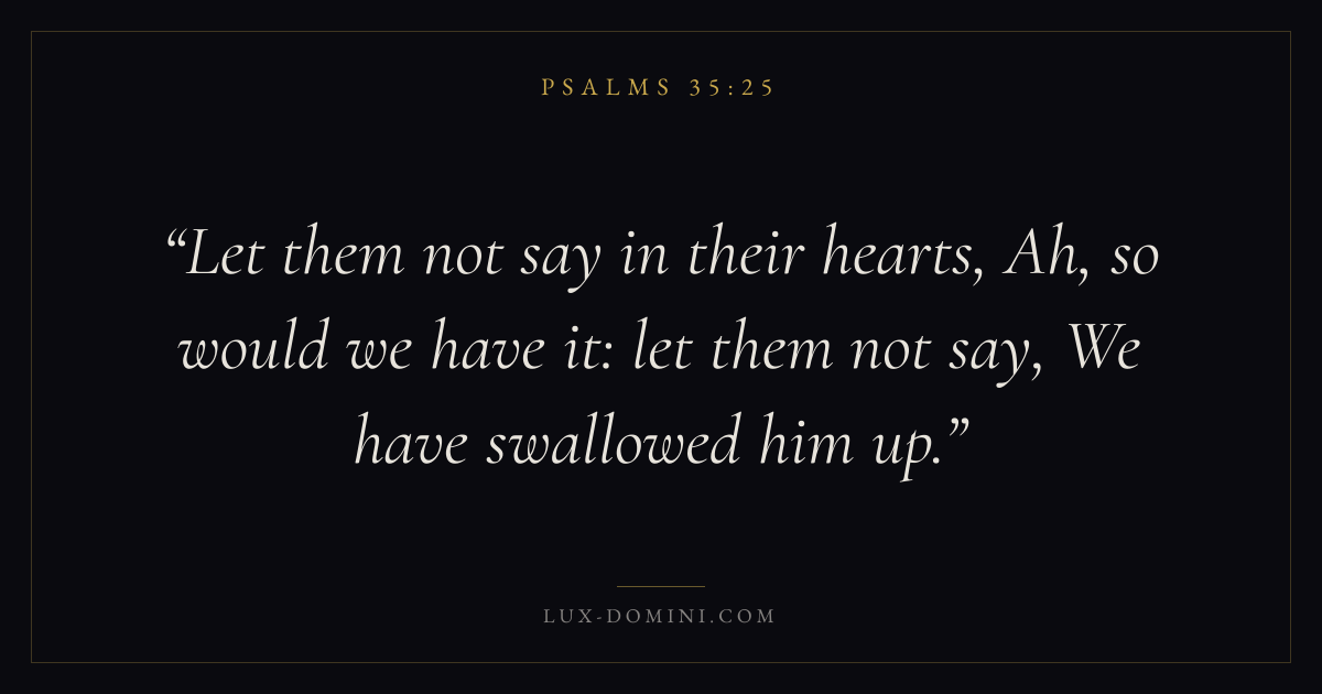 Let them not say in their hearts, Ah, so would we have it: let them not say, We have swallowed him up.