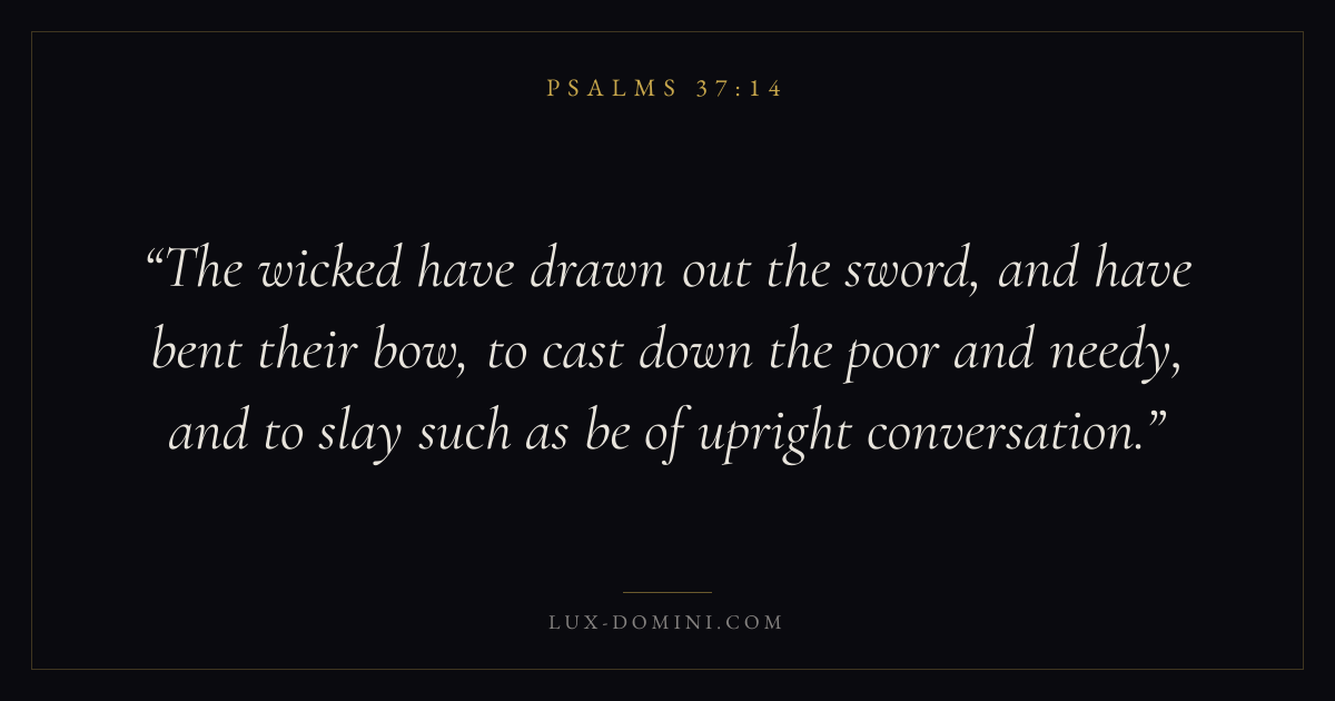 The wicked have drawn out the sword, and have bent their bow, to cast down the poor and needy, and to slay such as be of upright conversation.