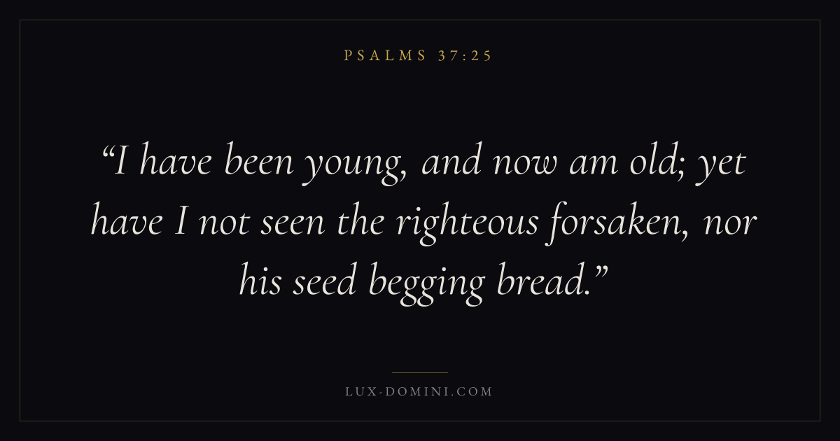 I have been young, and now am old; yet have I not seen the righteous forsaken, nor his seed begging bread.