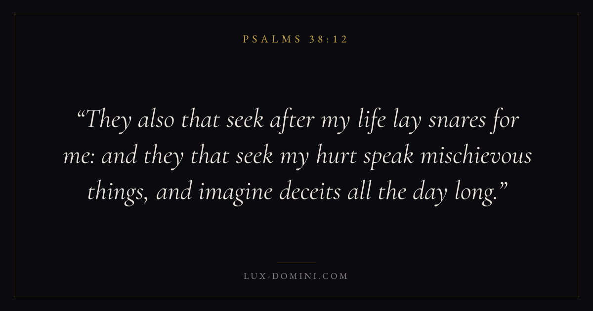 They also that seek after my life lay snares for me: and they that seek my hurt speak mischievous things, and imagine deceits all the day long.