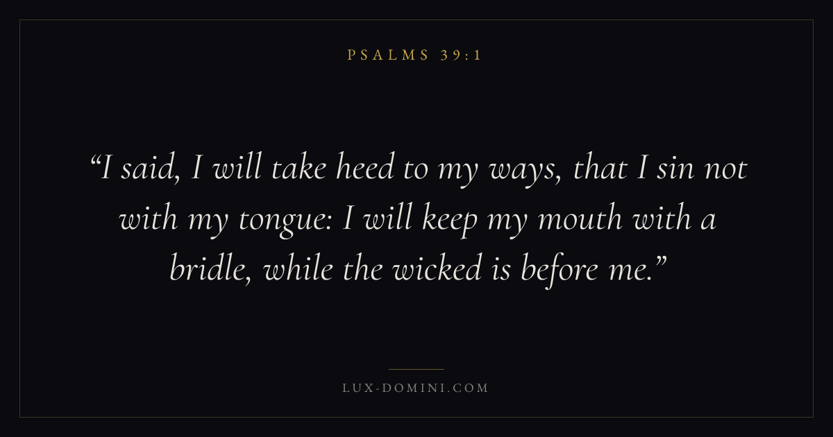 I said, I will take heed to my ways, that I sin not with my tongue: I will keep my mouth with a bridle, while the wicked is before me.