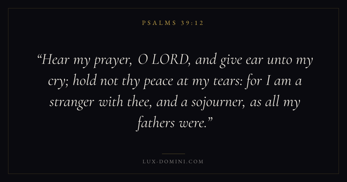 Hear my prayer, O LORD, and give ear unto my cry; hold not thy peace at my tears: for I am a stranger with thee, and a sojourner, as all my fathers were.