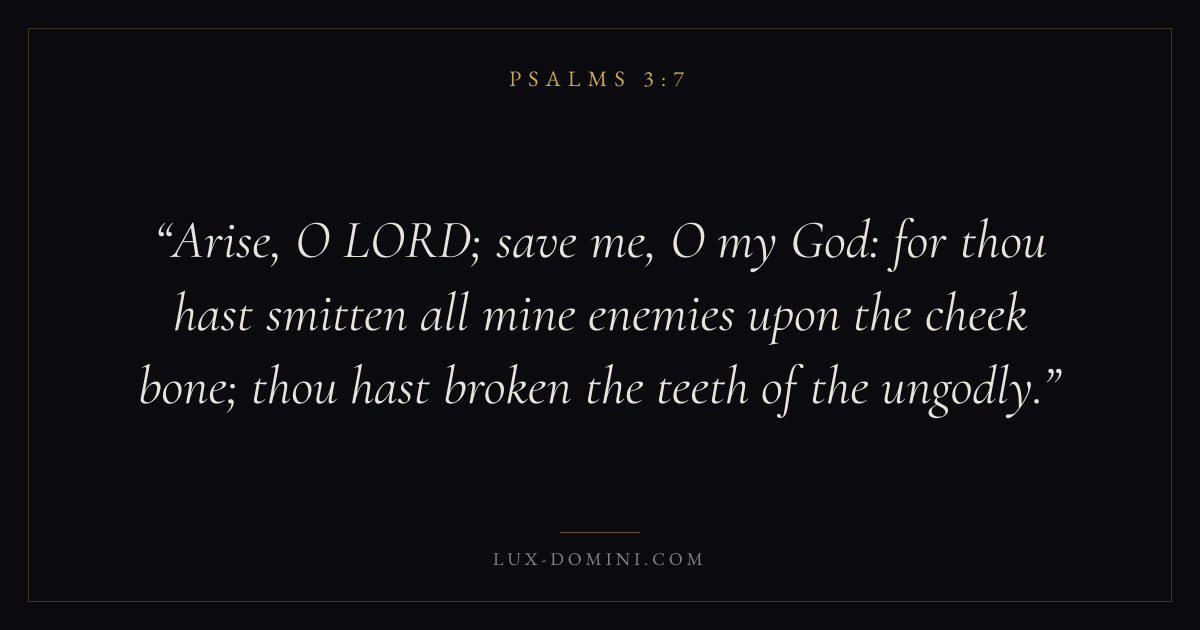 Arise, O LORD; save me, O my God: for thou hast smitten all mine enemies upon the cheek bone; thou hast broken the teeth of the ungodly.