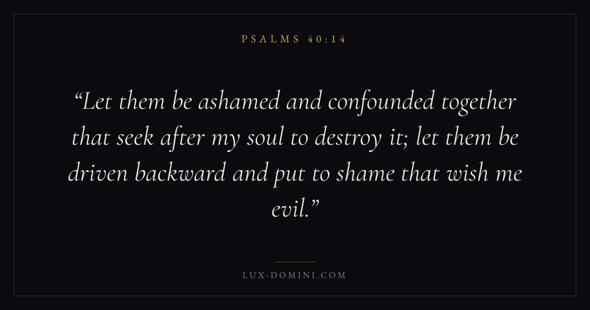Let them be ashamed and confounded together that seek after my soul to destroy it; let them be driven backward and put to shame that wish me evil.