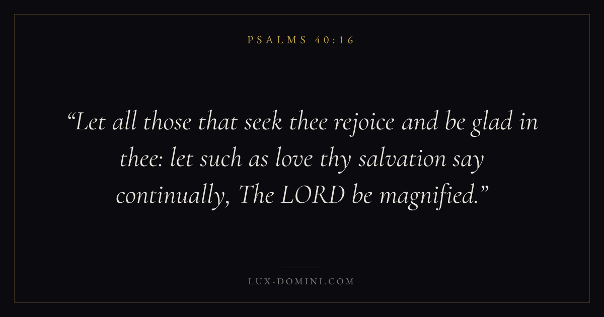 Let all those that seek thee rejoice and be glad in thee: let such as love thy salvation say continually, The LORD be magnified.