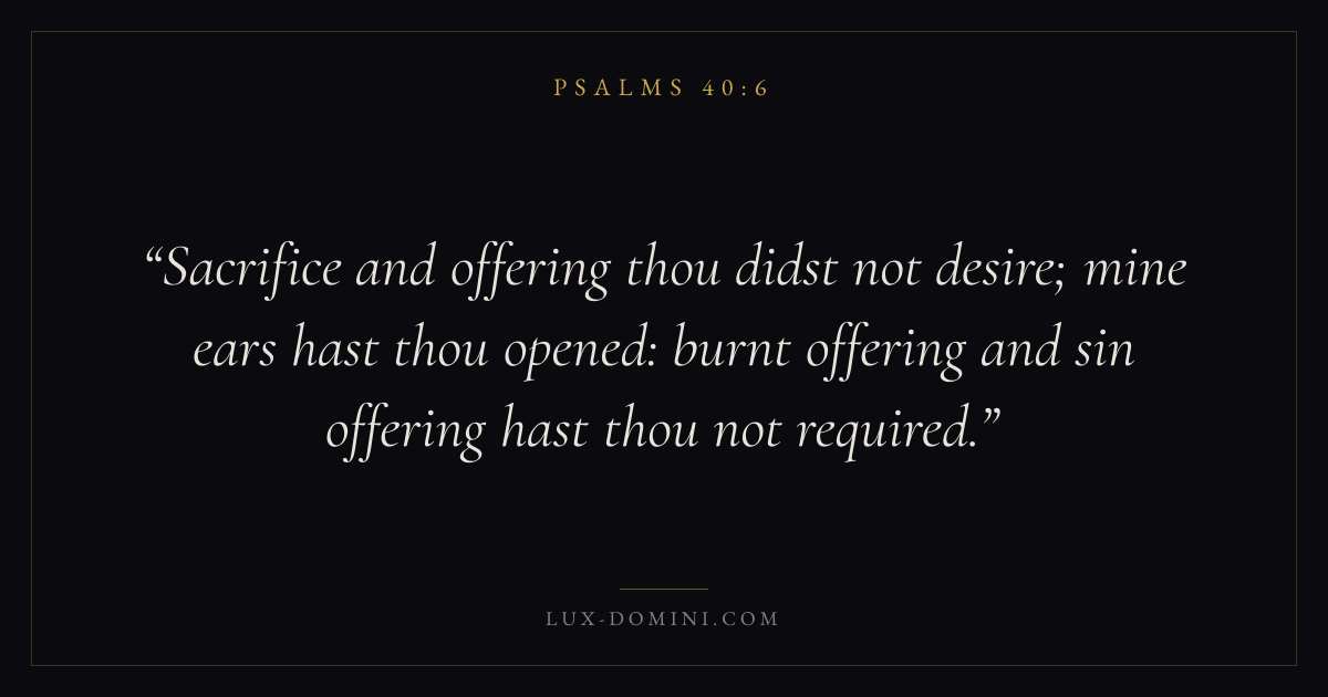 Sacrifice and offering thou didst not desire; mine ears hast thou opened: burnt offering and sin offering hast thou not required.