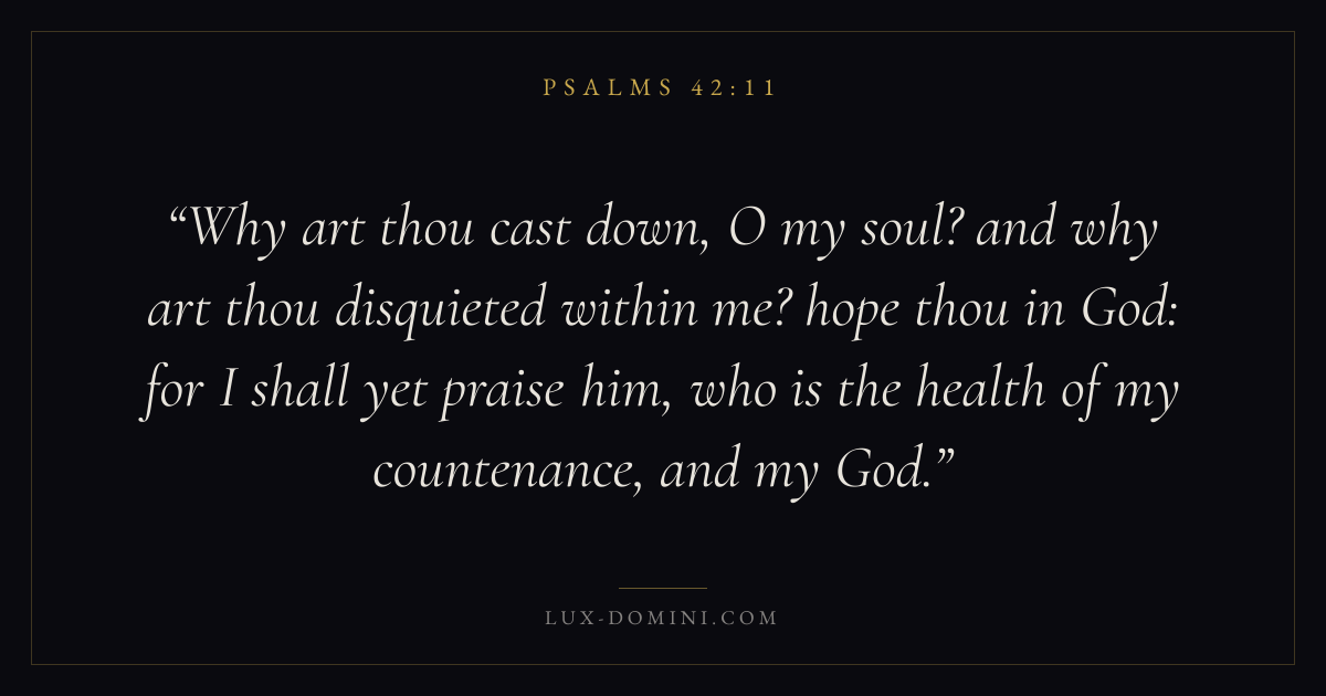 Why art thou cast down, O my soul? and why art thou disquieted within me? hope thou in God: for I shall yet praise him, who is the health of my countenance, and my God.