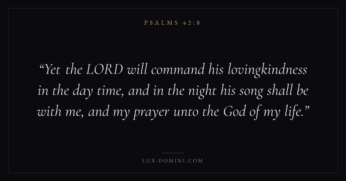 Yet the LORD will command his lovingkindness in the day time, and in the night his song shall be with me, and my prayer unto the God of my life.