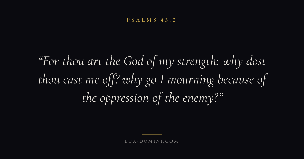 For thou art the God of my strength: why dost thou cast me off? why go I mourning because of the oppression of the enemy?
