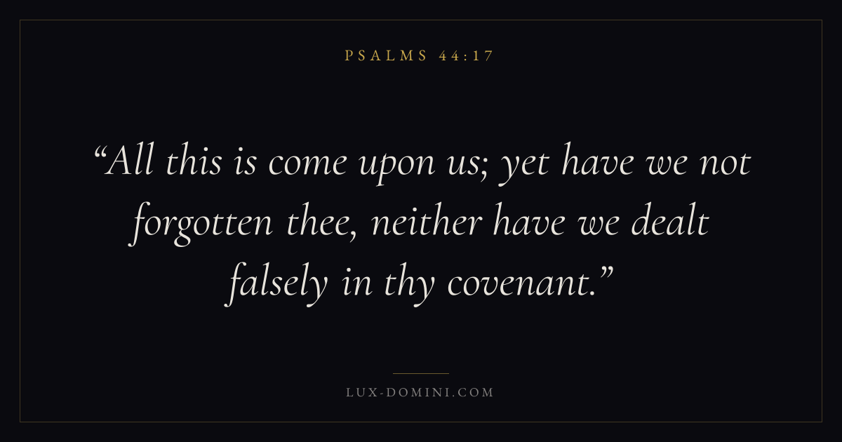 All this is come upon us; yet have we not forgotten thee, neither have we dealt falsely in thy covenant.