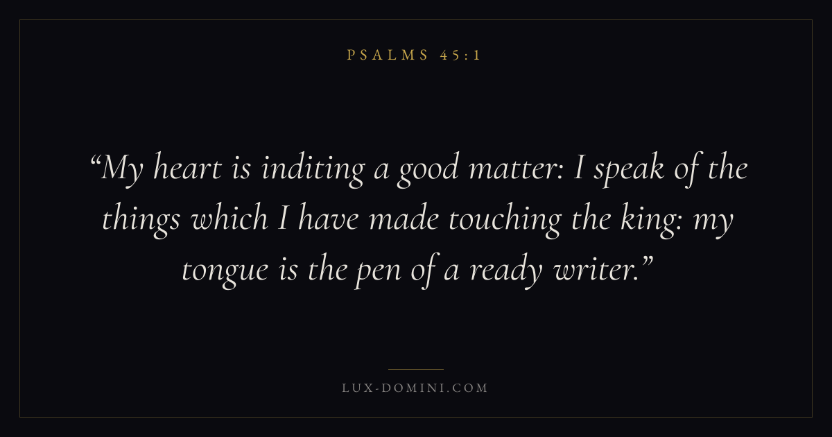 My heart is inditing a good matter: I speak of the things which I have made touching the king: my tongue is the pen of a ready writer.