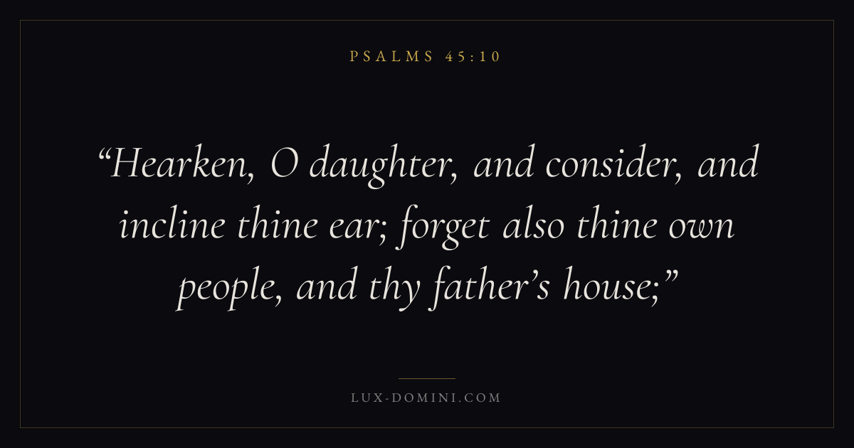 Hearken, O daughter, and consider, and incline thine ear; forget also thine own people, and thy father’s house;