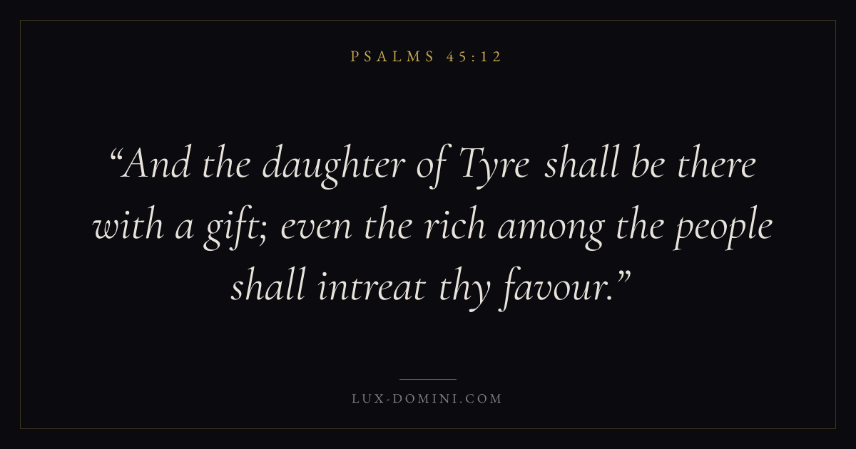 And the daughter of Tyre shall be there with a gift; even the rich among the people shall intreat thy favour.