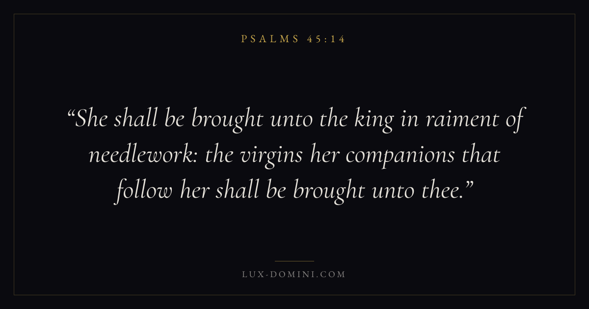She shall be brought unto the king in raiment of needlework: the virgins her companions that follow her shall be brought unto thee.