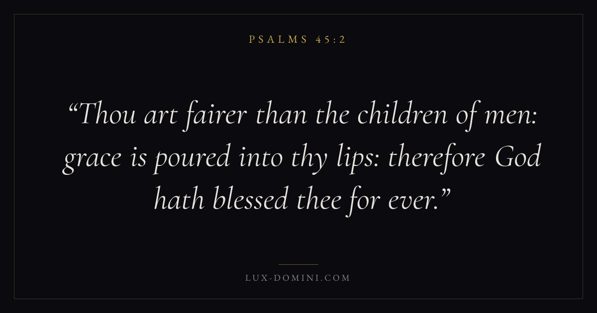 Thou art fairer than the children of men: grace is poured into thy lips: therefore God hath blessed thee for ever.