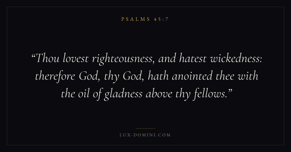 Thou lovest righteousness, and hatest wickedness: therefore God, thy God, hath anointed thee with the oil of gladness above thy fellows.