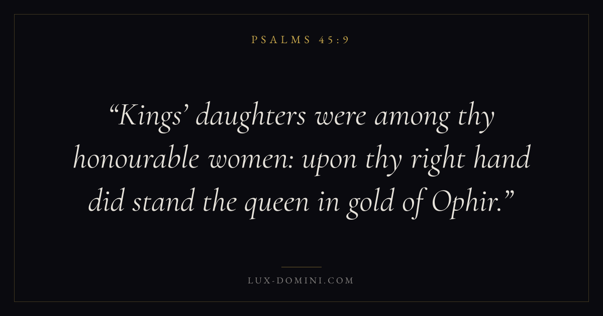 Kings’ daughters were among thy honourable women: upon thy right hand did stand the queen in gold of Ophir.