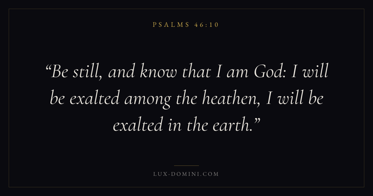 Be still, and know that I am God: I will be exalted among the heathen, I will be exalted in the earth.