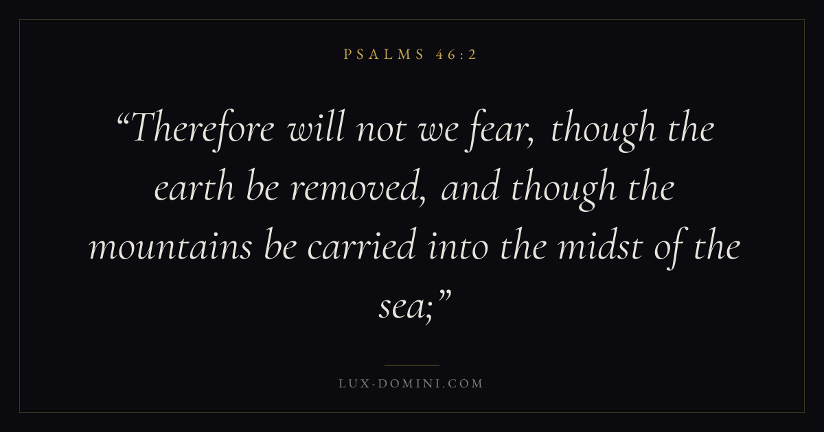 Therefore will not we fear, though the earth be removed, and though the mountains be carried into the midst of the sea;