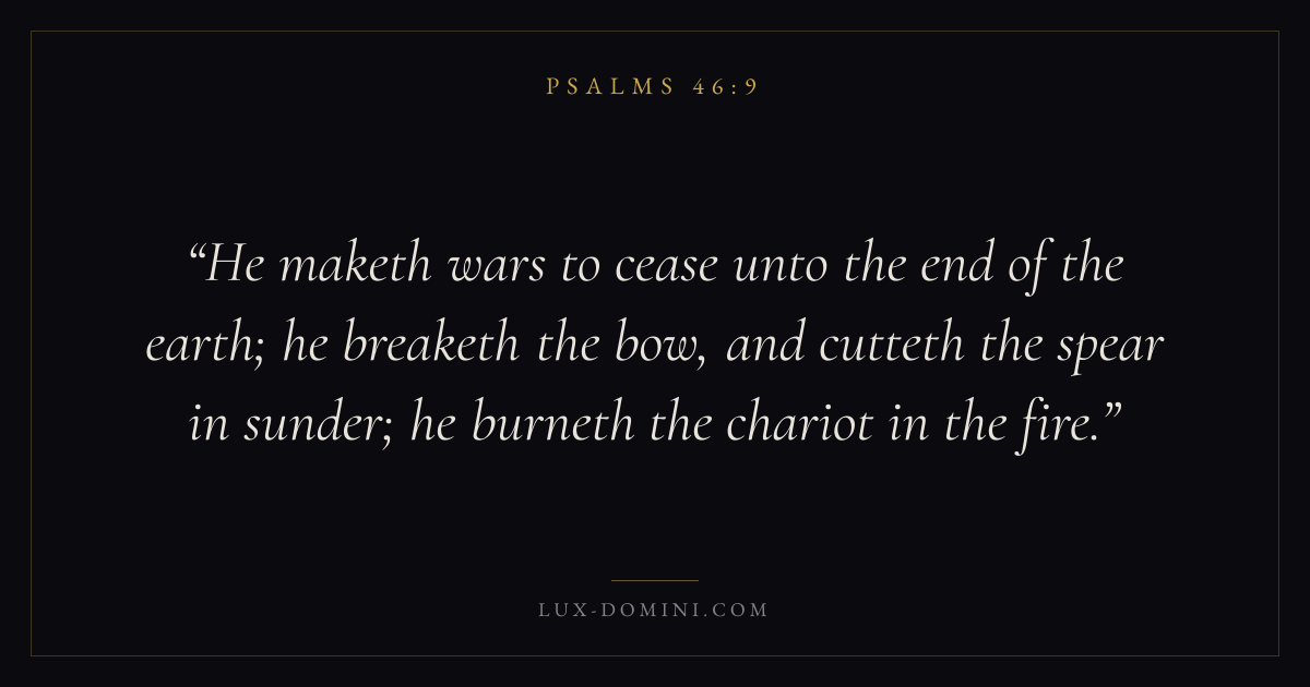 He maketh wars to cease unto the end of the earth; he breaketh the bow, and cutteth the spear in sunder; he burneth the chariot in the fire.
