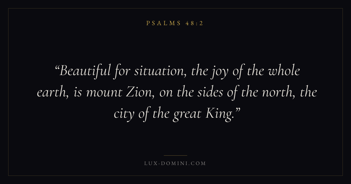 Beautiful for situation, the joy of the whole earth, is mount Zion, on the sides of the north, the city of the great King.